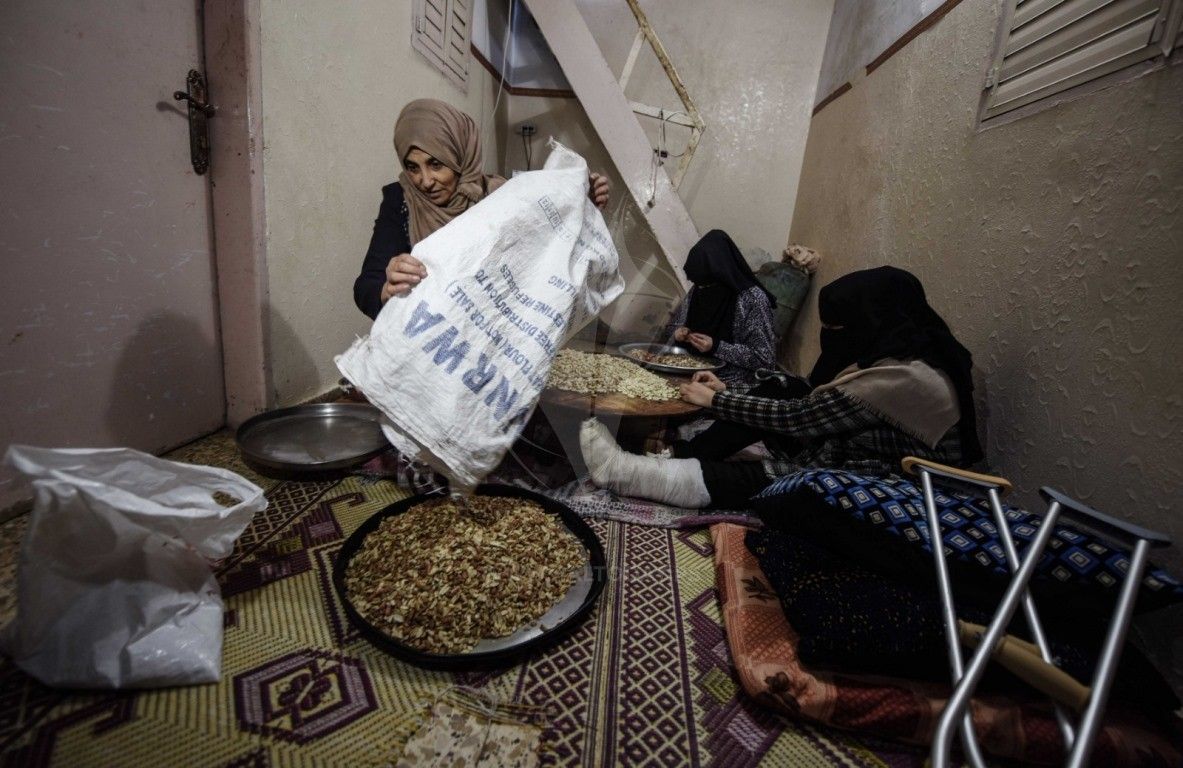 في مخيم الشابورة بمدينة رفح جنوبي قطاع غزة، نجحت 4 من نساء عائلة أبو موسى في إيجاد مهنة لهنّ من خلال تقطيع الفستق.