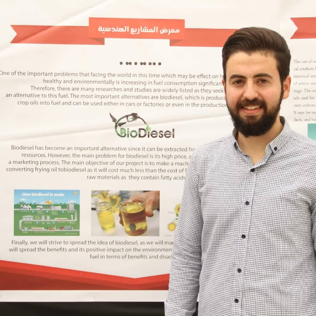 كلّل الشاب الفلسطيني أحمد أشقر، تخرّجه من كلية الهندسة وتكنولوجيا المعلومات في جامعة النجاح الوطنية، بمشروعٍ مميّز عبارة عن ماكينة تقوم بتحويل زيت الطبخ الى ديزل حيوي.
