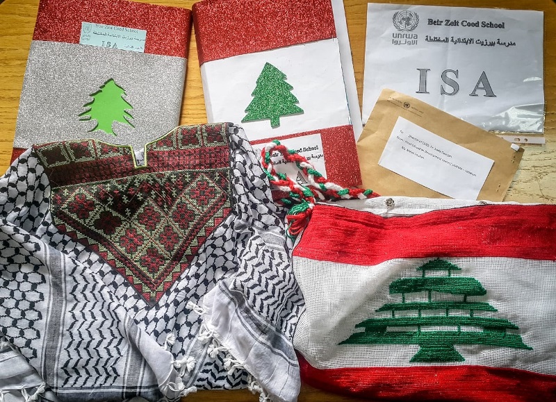 قام طلابٌ بمدرسة بيرزيت التابعة لوكالة غوث وتشغيل اللاجئين الفلسطينيين "الأونروا" في منطقة إقليم الخروب جنوبي لبنان، بإرسال حقيبةٍ مطرزة يدوياً بأيدي تلامذة فلسطينيين الذين اختاروا عشرة عناصر معبرة عن تراثهم وثقافتهم الفلسطينية.
