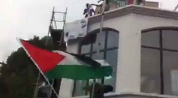 رفرف العلم الفلسطيني أمس الإثنين، فوق القنصلية الاسرائيلية في العاصمة الفرنسية باريس، رفضاً لصفقة القرن.