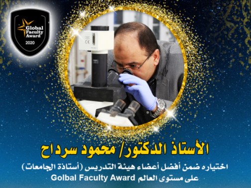 اختير الدكتور محمود محمد سفيان سرداح، أستاذ أمراض الدم والوراثة الجزيئية بكلية العلوم في جامعة الأزهر - غزة، وعميد البحث العلمي سابقاً، ليفوز بجائزة أعضاء هيئة التدريس العالمية Global Faculty Award.