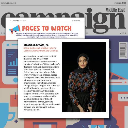 وحين قامت مؤسسة CAMPAIGN البريطانية وهي من أكبر شركات الإعلام والتسويق في العالم باختيار 30 موهبة إعلامية وتسويقية تحت سن ال 30 عام لعام 2022، كانت ميسم ضمن هذه المواهب الأكثر نجاحاً وتأثيراً في عملها من خلال نشاطها وكدها وتعبها.