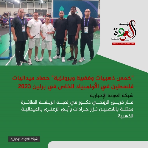 ورفع رصيد غلة فلسطين من الذهب البطل نزار جرادات بحصوله على الميدالية الذهبية في لعبة الريشة الطائرة فردي.
