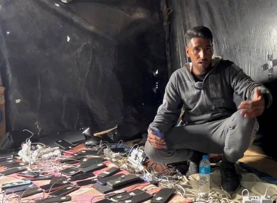 ويقول القهوجي أنه قام بإخراج ثلاثة ألواح شمسية من تحت الركام وقام بصيانتهم وافتتح خيمه داخل مخيم النازحين غرب رفح خاصة بشحن البطاريات والجوالات.