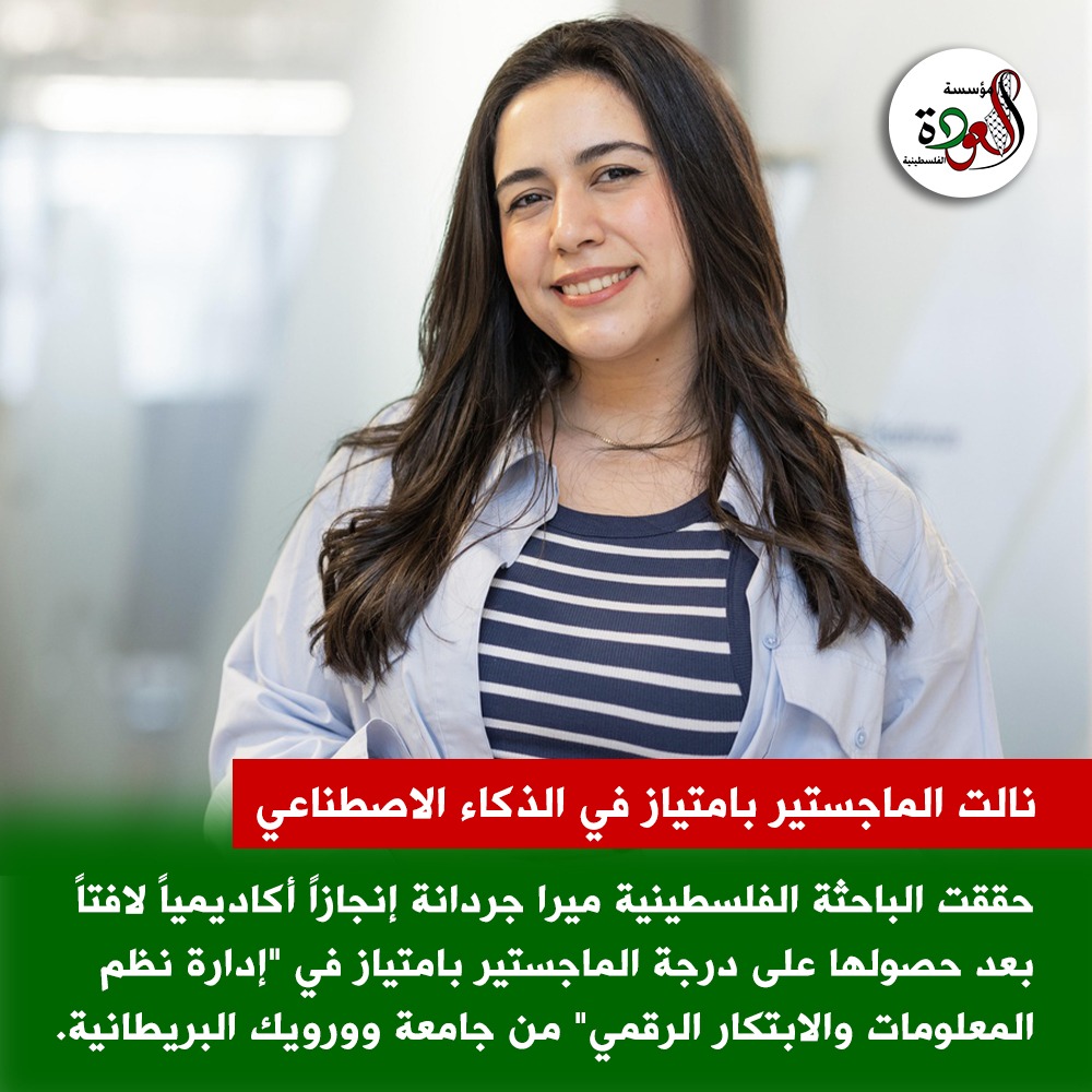 حققت الباحثة الفلسطينية ميرا جردانة إنجازاً أكاديمياً لافتاً بعد حصولها على درجة الماجستير بامتياز في "إدارة نظم المعلومات والابتكار الرقمي" من جامعة وورويك البريطانية، ضمن منحة HESPAL المخصصة لدعم الأكاديميين الفلسطينيين الشباب.