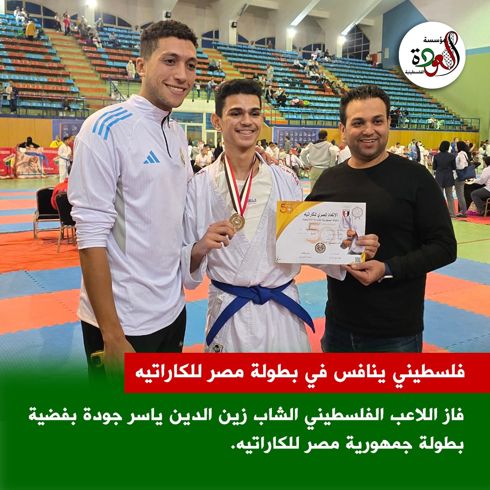 أحرز اللاعب الفلسطيني زين الدين ياسر جودة، الميدالية الفضية في بطولة الجمهورية المفتوحة للكاراتيه، التي نظمها الاتحاد المصري للكاراتيه وأقيمت على أرض استاد جامعة حلوان في مصر، ضمن فئة +65 كغم لفئة تحت 15 سنة، ممثلاً عن نادي وأكاديمية راجي عبيد.