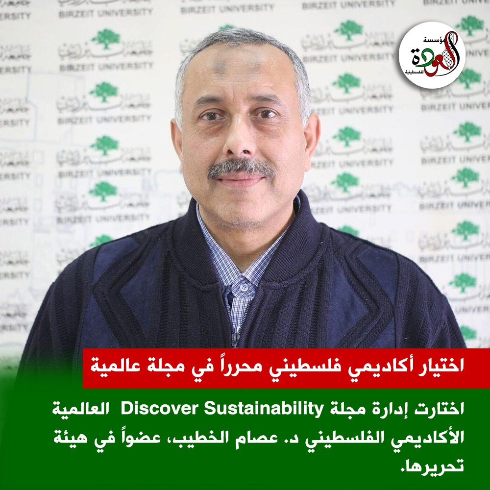 اختارت إدارة مجلة Discover Sustainability العالمية الأكاديمي الفلسطيني د. عصام الخطيب، عضواً في الهيئة التحريرية للمجلة الصادرة عن دار النشر الدولية Springer .