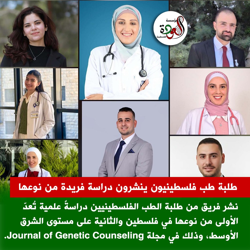 نشر فريق من طلبة الطب الفلسطينيين دراسةً علمية تُعدّ الأولى من نوعها في فلسطين والثانية على مستوى الشرق الأوسط، وذلك في مجلة Journal of Genetic Counseling المصنّفة ضمن الربع الثاني (Q2).
