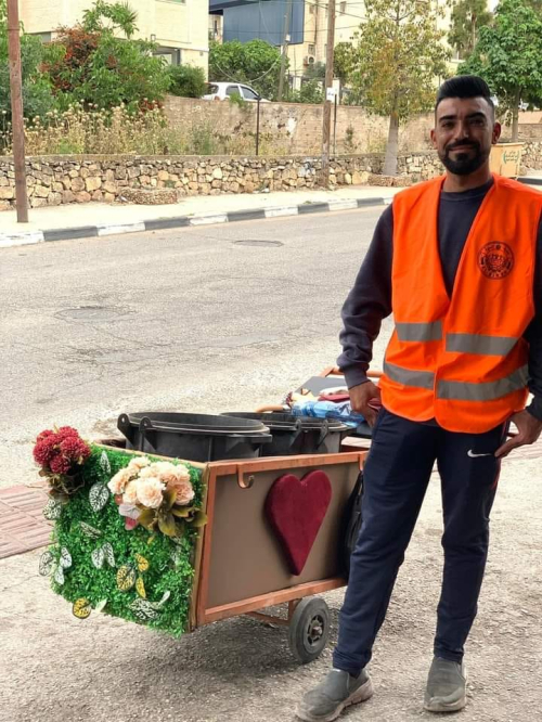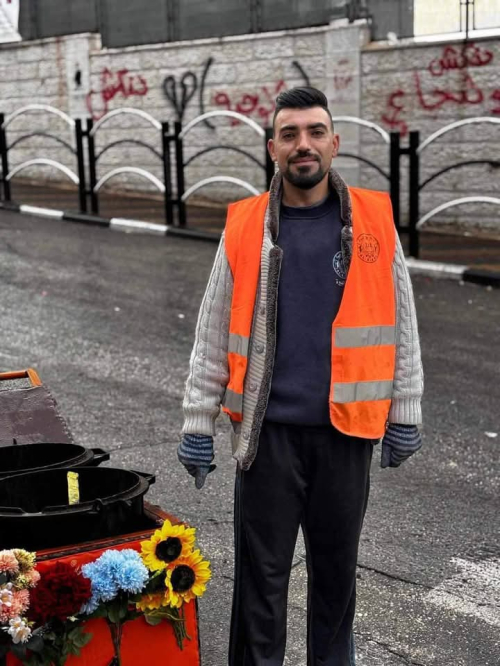 في زوايا مدينة البيرة، وبين أزقة أحيائها، لا تمرّ من مكان دون أن تلمح لمسة جمال تركها "مهندس النظافة" أحمد حمايل (33 عاماً)، الذي لا يكتفي بجمع النفايات، بل يصنع من عمله مساحةً للأمل والابتسامة.
