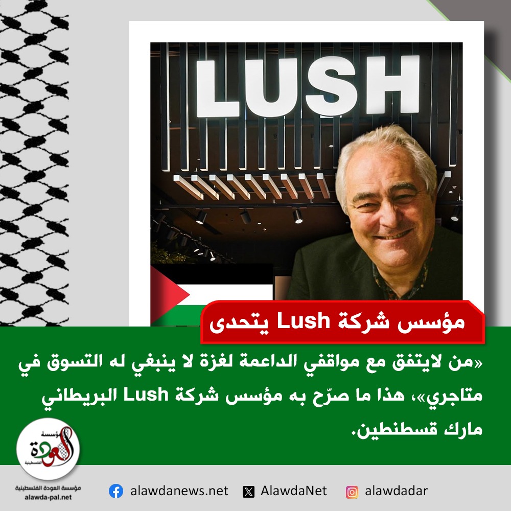 «من لايتفق مع مواقفي الداعمة لغزة لا ينبغي له التسوق في متاجري»، هذا ما صرّح به رائد الأعمال البريطاني مارك قسطنطين، وهو مؤسس شركة Lush لمستحضرات التجميل والعناية بالبشرة.