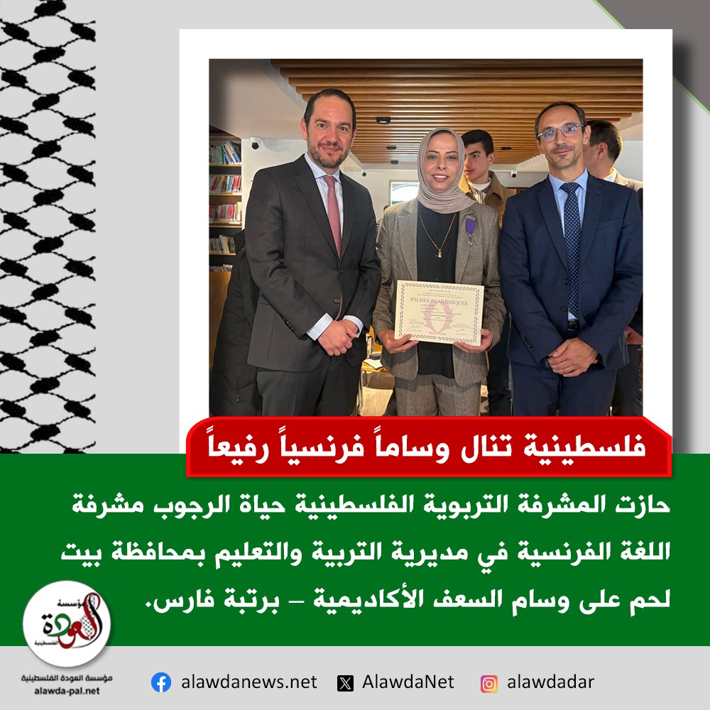 تربوية فلسطينية تنال وساماً فرنسياً رفيعاً