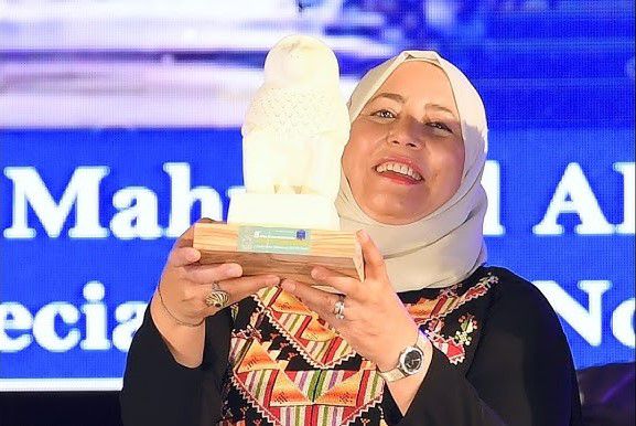وكانت قد تُوّجت العام الماضي على جائزة "الفضيلة والمعرفة" من مؤسسة دول البحر الأبيض المتوسط في إيطاليا كأول فلسطينية تحصل عليها لدورها في التعليم في ظلّ الطوارئ والتكنولوجيا التعليمية.