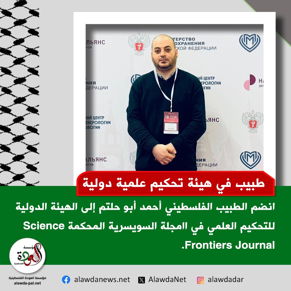 أُعلن عن تعيين الطبيب والباحث الفلسطيني د. أحمد أبو حلتم عضواً في الهيئة الدولية للتحكيم العلمي (International Peer Review Panel) في المجلة السويسرية المحكمة Science Frontiers Journal (e-ISSN: 2994-7030)، في خطوة أكاديمية جديدة تعكس حضوره المتنامي في الأوساط العلمية الدولية.