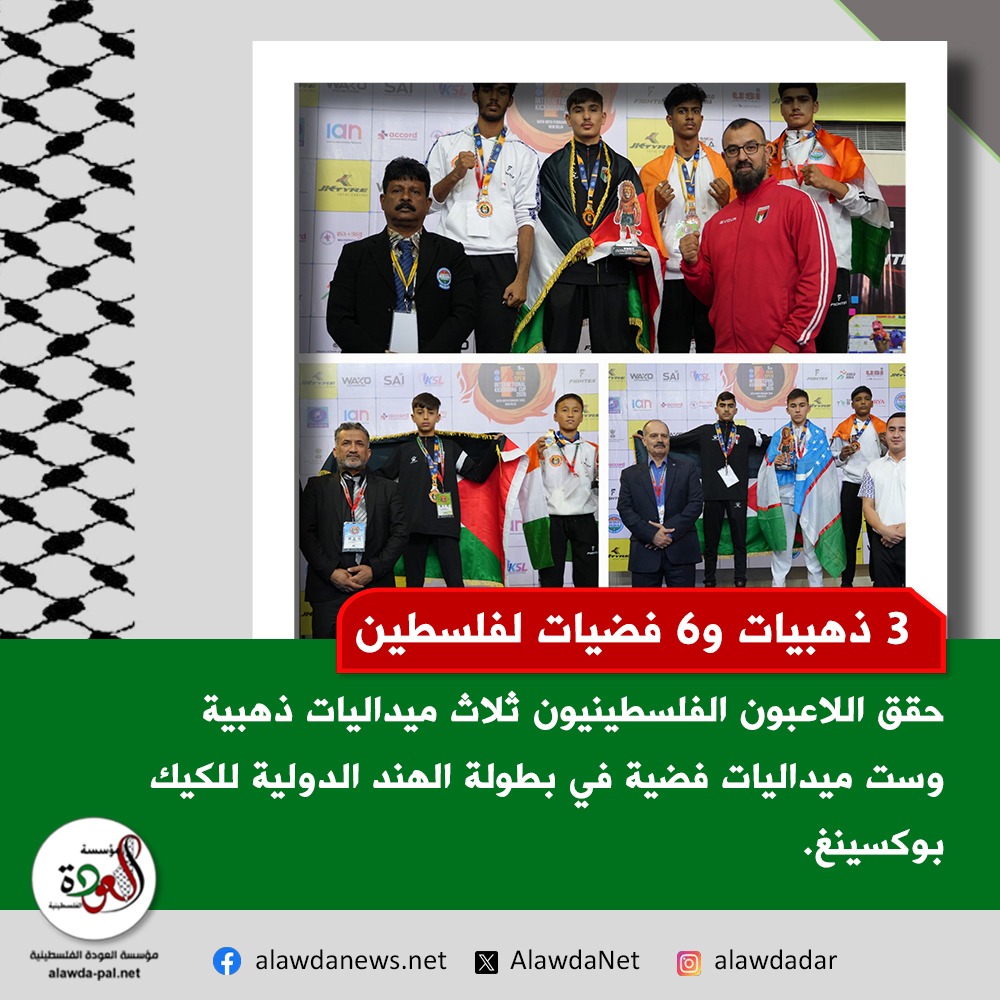 سجّلت فلسطين إنجازاً رياضياً جديداً بعد حصد ثلاث ميداليات ذهبية وست ميداليات فضية في بطولة الهند الدولية الخامسة المفتوحة للكيك بوكسينغ، التي أُقيمت في العاصمة نيودلهي خلال الفترة من 4 إلى 9 شباط/فبراير الجاري، بمشاركة واسعة من لاعبين يمثلون عدة دول.