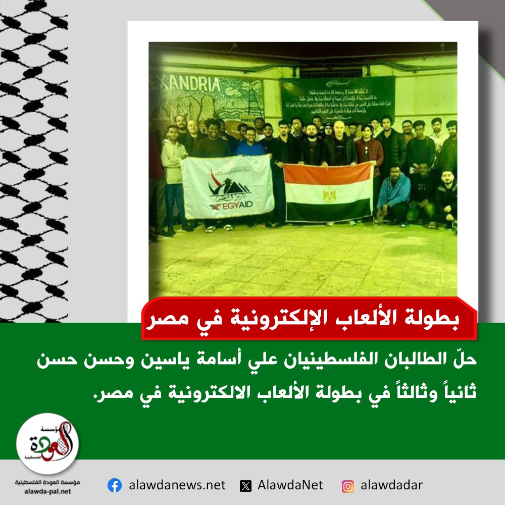 فقد نال الطالبان الفلسطينيان علي أسامة ياسين وحسن محمد حسن المركزين الثاني والثالث في البطولة التي أطلقها نادي الطلاب الوافدين بالإسكندرية.