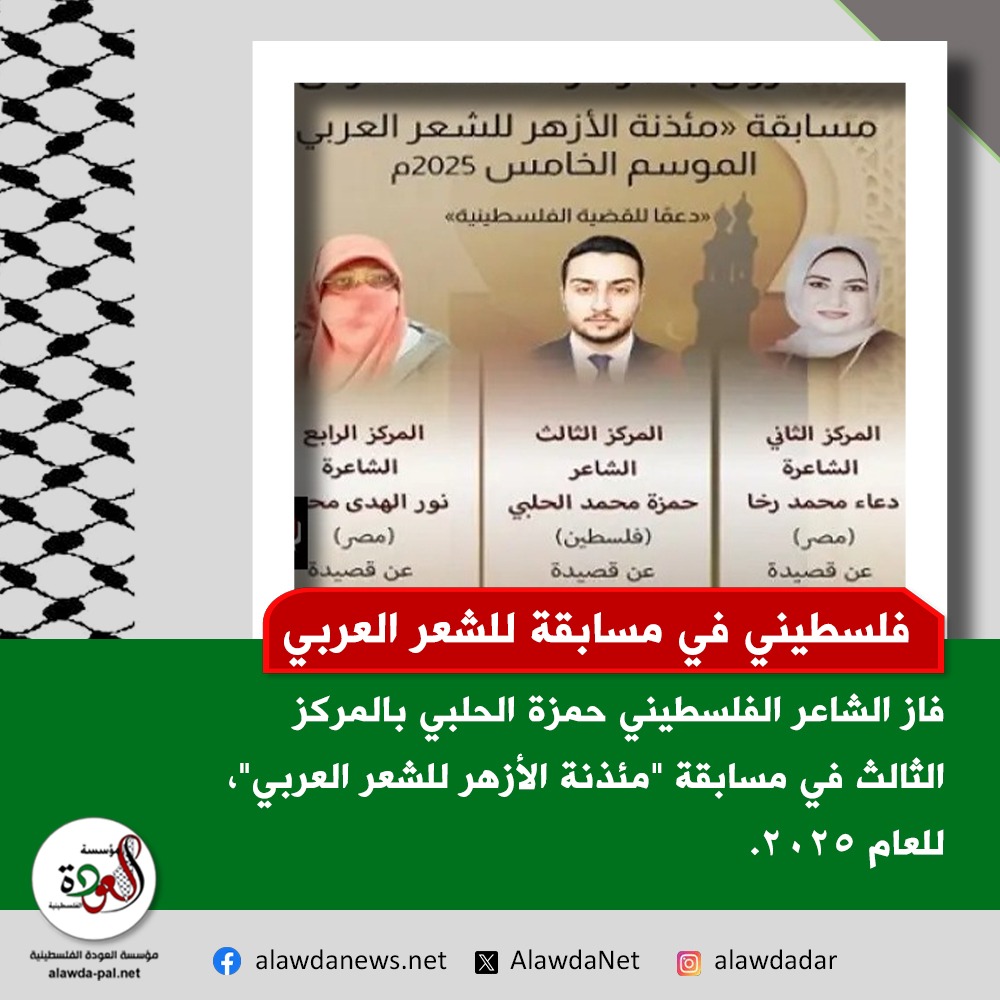 شاعر فلسطيني يفوز بالمركز الثالث في مسابقة «مئذنة الأزهر للشعر العربي»